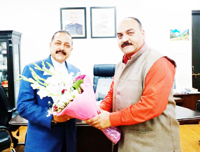 NEW DELHI, Mar 6: Vice Chairman, JAKFED Munish Sharma called on Union Minister of State in PMO with Independent Charge for development of North Eastern Region (DoNER), Dr Jitendra Singh here, today and discussed various issues related to youth who want to take-up farming and the problems being faced by the farmers of the J&K State.