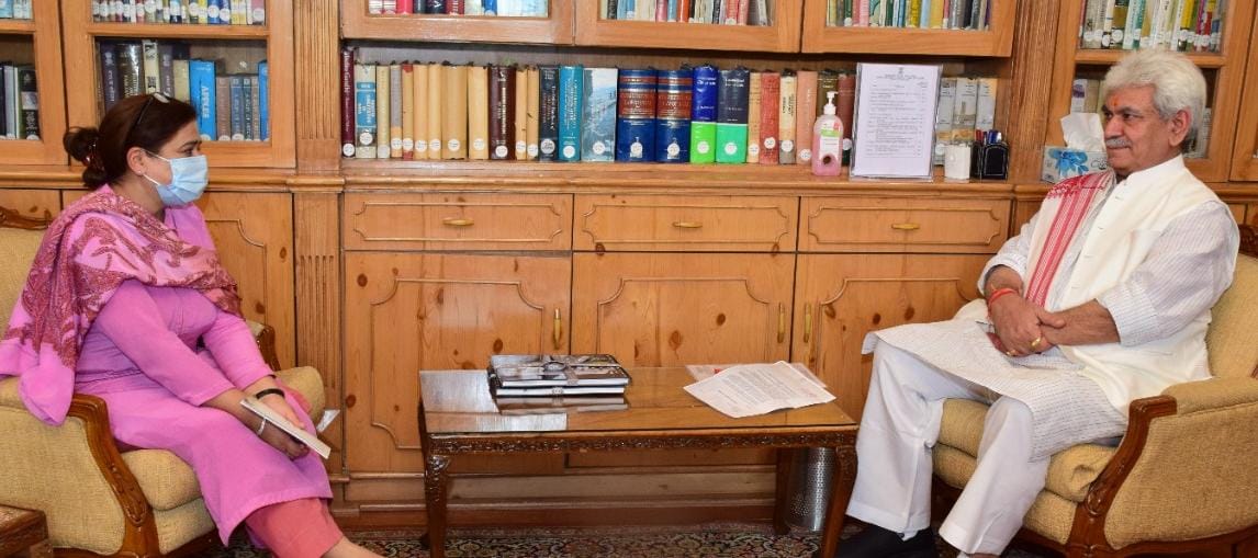 SRINAGAR, MAY 27: Prof. Nilofar Khan, Vice Chancellor, University of Kashmir, called on the Lieutenant Governor, Manoj Sinha at the Raj Bhavan here today.