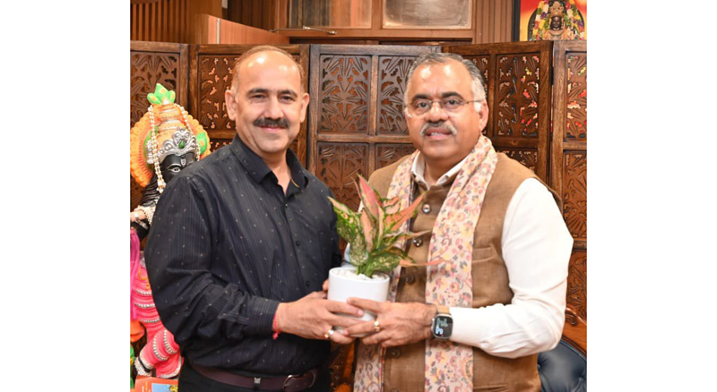 During the discussion, Ved Sharma briefed Tarun Chugh on the activities conducted during the recently concluded Seva Pakhwara, held from September 17 to October 2.