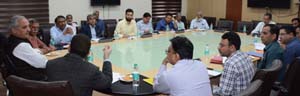 Minister for Revenue, A R Veeri chairing a meeting at Jammu on Thursday.