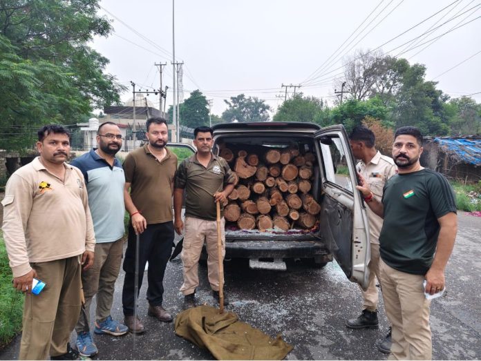 On inspection, officials found the SUV loaded with approximately 15 to 20 quintals of Khair wood, suspected to be illegally transported for commercial purposes.