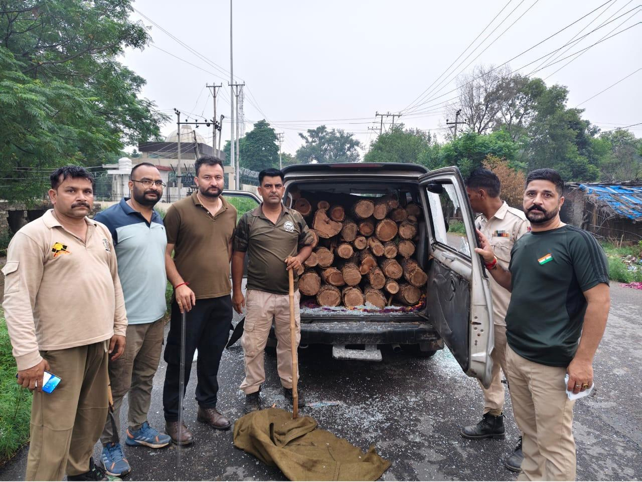 JAMMU, Jun 20: In a joint operation, Jammu and Kashmir Police and Forest Department officials seized a vehicle carrying illegally cut Khair wood near Kanger Morh in the Gharota area during the early hours of Thursday.