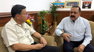 Veteran Sikkim leader and Member of Parliament, P.D. Rai calling on Union Minister Dr Jitendra Singh at New Delhi on Tuesday.