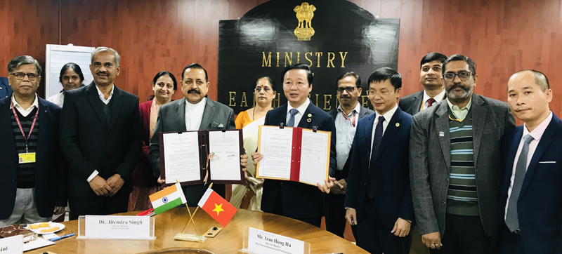 The Vietnamese delegation led by Minister Tran Hong Ha included Deputy Director General of International Cooperation Departments, Government of Vietnamese Tuan Negoc Le, Head of the Office of Science & Technology Vietnamese Embassy in India Li Truong Giang, Representative officer Science and Technology Vietnamese Embassy in India Andy Bui and other senior officials while the Indian delegation led by Science and Technology Minister Dr. Jitendra Singh included Secretary in the Ministry of Earth Sciences Dr. M Ravichandran, Joint Secretary Ministry of Earth Sciences Indira Murthy, Scientist Ministry of Earth Science Dr Vijay Kumar, Scientist Gopal Aiyneger, Scientist Ministry of Earth Sciences Parvinder Mani , Scientist K R Mangalaa, Scientist P K Srivastava and others. The Ministry of External Affairs, Government of India was represented by Bharat Kuthati and Neethu Rajan.