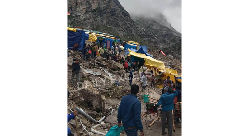 View of camps near Amarnath holy cave after the yatra was halted following rain on Thursday. -Excelsior/Shakeel By Daily Excelsior - July 15, 2022 Share FacebookTwitterWhatsAppPinterestLinkedinCopy URLTelegramEmailTumblrReddItPrintKoo View of camps near Amarnath holy cave after the yatra was halted following rain on Thursday. -Excelsior/Shakeel View of camps near Amarnath holy cave after the yatra was halted following rain on Thursday. -Excelsior/Shakeel Follow our WhatsApp channel