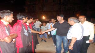 Vikram Malhotra, General Secretary JKPCC interacting with players while inaugurating Day-Night Friendship Cricket Cup in Jammu.