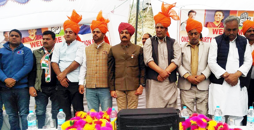 Vikramaditya Singh and others in a Congress workers convention at Ramban on Monday.