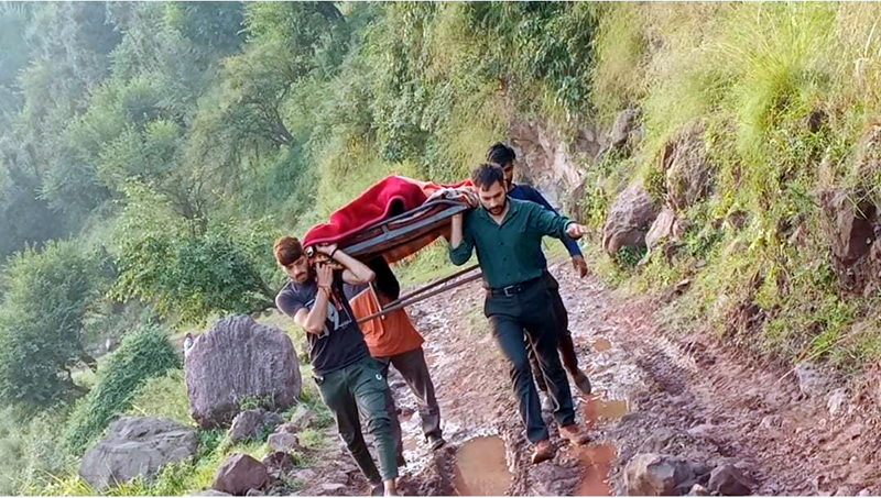 Villagers carrying pregnant woman to hospital on cot in Nowshera. — Excelsior/Imran By Daily Excelsior - September 25, 2022 Share FacebookTwitterWhatsAppPinterestLinkedinCopy URLTelegramEmailTumblrReddItPrintKoo Villagers carrying pregnant woman to hospital on cot in Nowshera. — Excelsior/Imran Villagers carrying pregnant woman to hospital on cot in Nowshera. — Excelsior/Imran Follow our WhatsApp channel