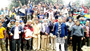 UDHAMPUR, Feb 12: Demanding completion of road construction work and land compensation, villagers of Chirdi and adjoining areas held a strong protest demonstration against PMGSY Department, here today.