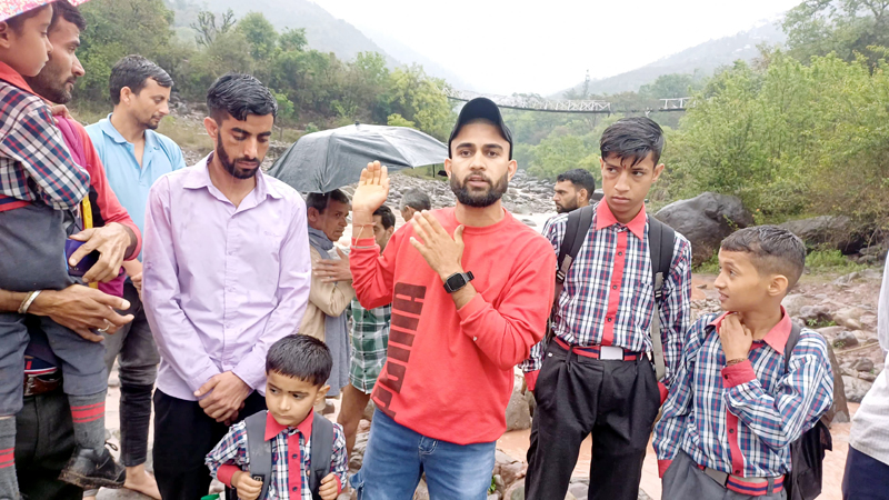 UDHAMPUR, Apr 30: Locals protested against the Public Works Department (PWD) and District administration for not repairing the wooden bridge at village Jandror, Block Nili, in Ghordi.