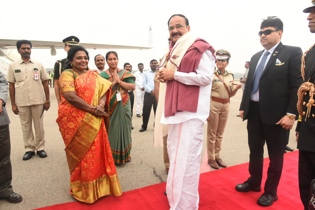 Vice President M Venkaiah Naidu left for New Delhi from Begumpet Airport here on Friday. (UNI)
