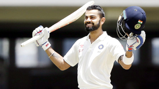 Virat Kohli responding to audience’s cheers after hitting double ton against West Indies on the second day of the Antigua Test.