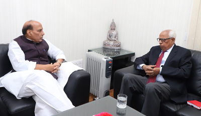 Governor of Jammu & Kashmir N N Vohra calling on Union Home Minister Rajnath Singh, in New Delhi on Sunday. (UNI).