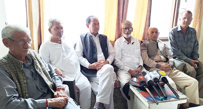 SCWC leaders addressing a press conference in Bhaderwah on Monday.