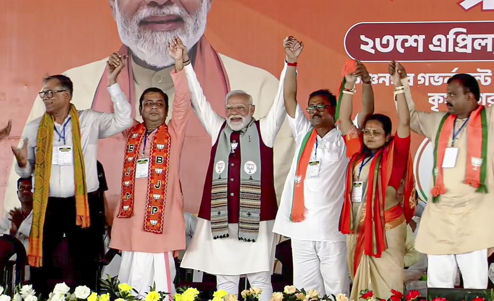 KRISHNAGAR, Apr 23: Prime Minister Narendra Modi on Thursday congratulated the people of West Bengal for their massive turnout in the ongoing first phase of assembly elections, and called the vote figures so far indicative of an “overwhelming mandate for change”.