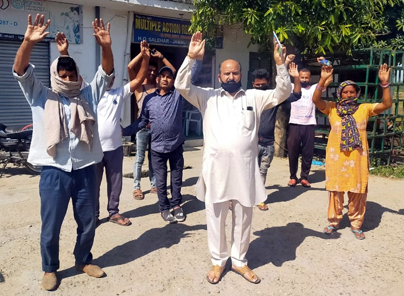 JAMMU, May 17: All India Kissan Sabha today staged a protest demonstration at village Salehar, R.S Pura under the leadership of Rakesh Sharma.