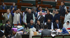 JAMMU, Feb 8: Both Houses of the Legislature were today rocked by protests from the Opposition members followed by a walk-out against assault on Kashmiri student in Haryana. In Assembly, some of the MLAs demanded that a resolution should be adopted and sent to Prime Minister Narendra Modi requesting him to stop attacks on Kashmiri students.