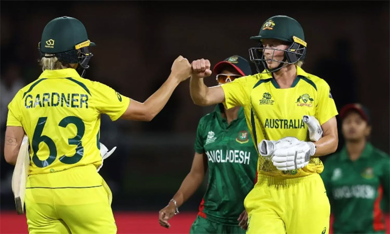 Bangladesh 107/7; 20 overs (Nigar Sultana Joty 57, Shorna Akter 12; Georgia Wareham 3/20, Darcie Brown 2/23) lost to Australia 111/2; 18.2 overs (Meg Lanning 48, Alyssa Healy 37; Shorna Akter 1/12, Marufa Akter 1/19) by eight wickets. (PTI)