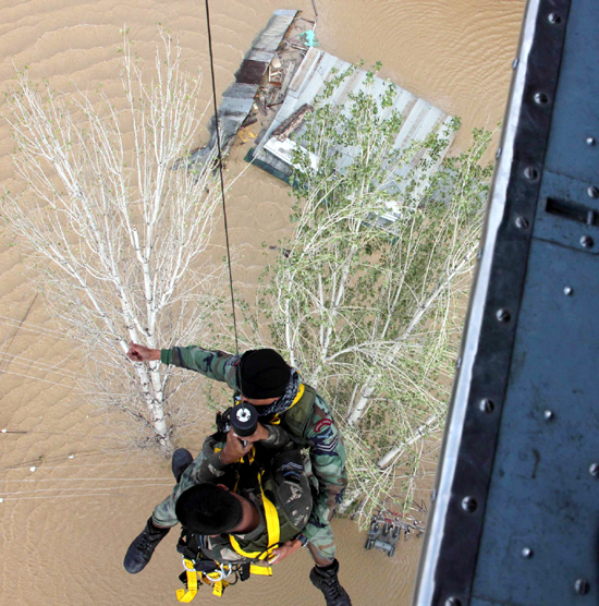 “Many camps of Army located in South Kashmir and Srinagar have been flooded and over 1000 Army personnel and their families are stranded without food and water”, an Army officer said.