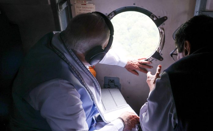 WAYANAD, AUG 10 :- Prime Minister Narendra Modi conducts aerial survey of landslide affected areas, in Wayanad on Saturday. UNI By Daily Excelsior - August 10, 2024 Share FacebookTwitterWhatsAppPinterestLinkedinCopy URLTelegramEmailTumblrReddItPrintKoo WAYANAD, AUG 10 :- Prime Minister Narendra Modi conducts aerial survey of landslide affected areas, in Wayanad on Saturday. UNI Follow our WhatsApp channel