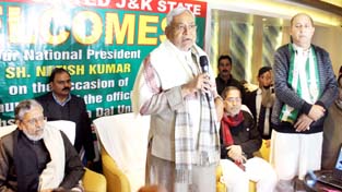 Bihar CM Nitish Kumar expressing his views during launch of JD(U) J&K website. -Excelsior/Rakesh