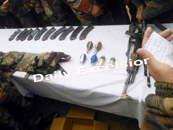 Weapons recovered from two militants killed in an encounter in Naid Khai area of Bandipora district toda