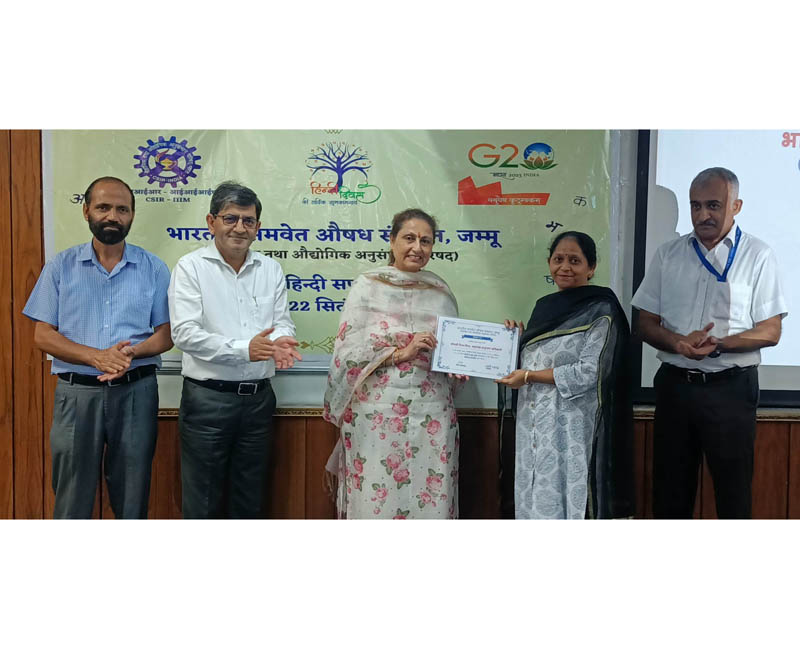 The employees of CSIR-IIIM, Jammu were also judged for Annual Performance in Official Work in Hindi for the financial year 2022-23. Jyoti Prabha, Receptionist (F&A) secured first position; Jyoti Devi, Jr Stenographer (S&P), got second position while the third position was jointly shared by Ramesh Mottan, Section Officer, Rakesh Chowdhary, SSA and Manish Kumar, Technical Officer. Buaditta, ASO, Yogesh Kumar, Technical Officer, Abhishek Gupta, Jr Stenographer, Nisha Vij, ASO and Vikas Patiaya, Section Officer received consolation prizes.