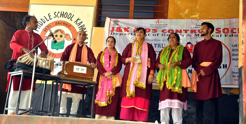 JAMMU, Sept 13: After attending the Regional Folk Media workshop organized by the National AIDS Control Society, J&K AIDS Control Society and Health and Medical Education Department of J&K Government at Lucknow, Sangam Tru Art Production affiliated with Bhartiya Lok Sangeet Kala Sansthan (BLSKS) started a weeklong special AIDS awareness campaign through folk media at Akhnoor and Tanda.