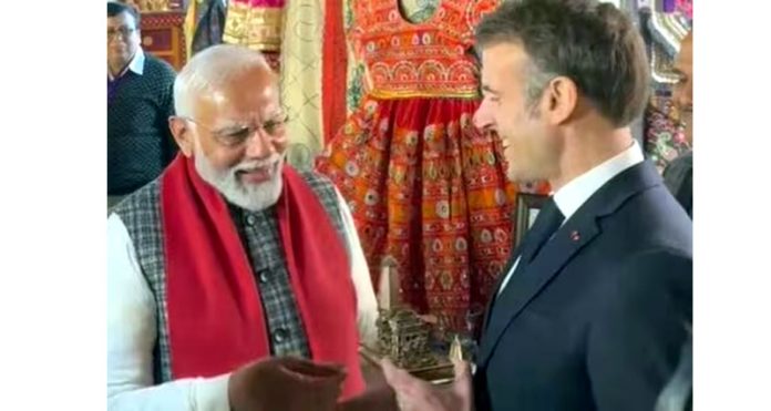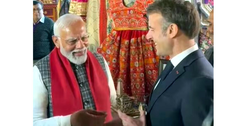 JAIPUR, Jan 25 : Prime Minister Narendra Modi and French President Emmanuel Macron took part Thursday in a roadshow in the Pink City, where the visitor was presented a replica of Ayodhya’s Ram temple and offered masala chai from a teashop before the leaders sat down for bilateral talks.