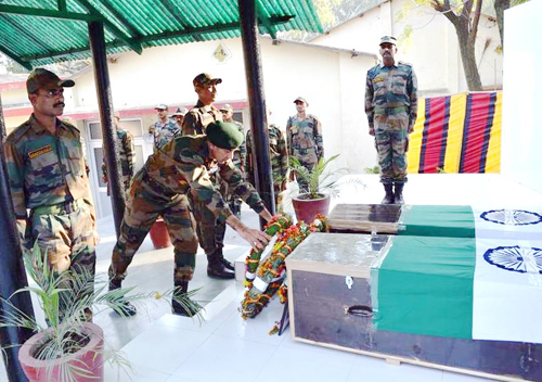 The ceremonial military send off was held at Rajouri Garrison today. General Officer Comma-nding, Uniform Force laid a wreath on behalf of Lieutenant General AK Sharma, General Officer Commanding, White Knight Corps and all ranks. The mortal remains of martyred soldiers are being sent to their native villages for performing the last rites.