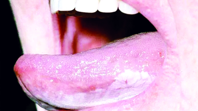 Oral cancer: Known as squamous cell carcinoma is seen as exophytic whitish or ulcerative firm areas with rolled borders.