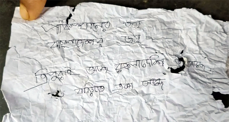 “My husband (Biswajit Nag) is working in Tripura. I am alone at home with my children. My in-laws have gone to Gujarat for treatment. I am terrified. My husband is securing the country, and his family is facing threats. I don’t understand who left this letter,” the BSF jawan’s wife, Suparna, said at her residence in Shantipur.