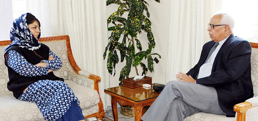 Meanwhile, Mehbooba Mufti today had an hour long meeting with Governor N N Vohra at Raj Bhawan this afternoon during which they discussed political situation, developmental works and economic situation in the State.