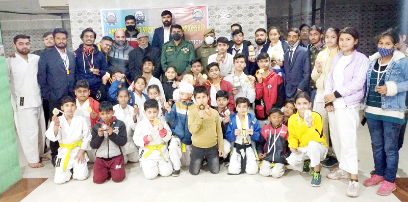 Winners displaying medals while posing for a group photograph with dignitaries at Jammu. By Daily Excelsior - January 1, 2022 Share FacebookTwitterWhatsAppPinterestLinkedinCopy URLTelegramEmailTumblrReddItPrintKoo Winners displaying medals while posing for a group photograph with dignitaries at Jammu. Winners displaying medals while posing for a group photograph with dignitaries at Jammu. Follow our WhatsApp channel