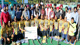 Winners of 4th Sant Gurbaksh Singh Danna Memorial Hockey Tournament posing alongwith Simrandeep Singh, Deputy Commissioner Jammu on Sunday.