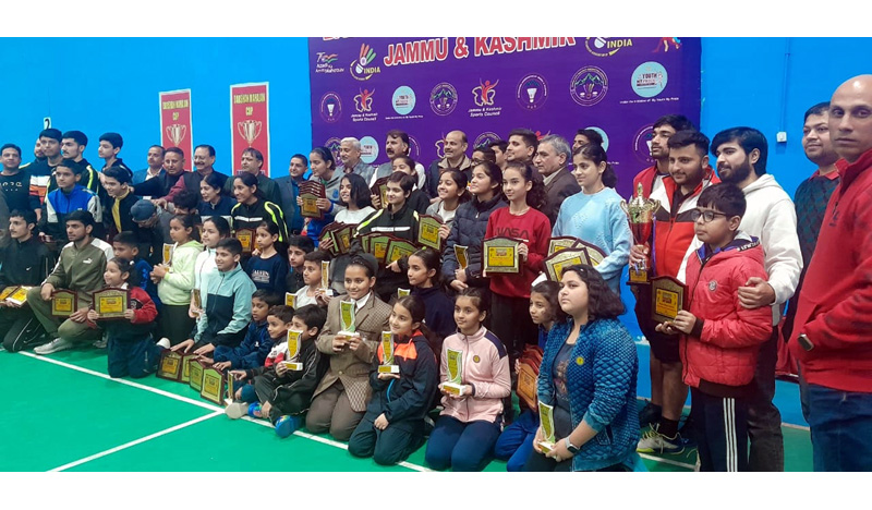 Winners of Badminton Championship posing for a group photograph alongwith dignitaries at MA Stadium Jammu on Monday. By Daily Excelsior - December 12, 2022 Share FacebookTwitterWhatsAppPinterestLinkedinCopy URLTelegramEmailTumblrReddItPrintKoo Winners of Badminton Championship posing for a group photograph alongwith dignitaries at MA Stadium Jammu on Monday. Winners of Badminton Championship posing for a group photograph alongwith dignitaries at MA Stadium Jammu on Monday. Follow our WhatsApp channel