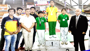 Winners of District Level Sambo Championship posing for group photograh.
