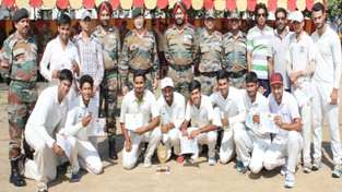Winners of Jagruk Hindustani Premier Cricket League posing for a group photograph at Damana Military Station in Jammu. By Daily Excelsior - October 16, 2015 Share FacebookTwitterWhatsAppPinterestLinkedinCopy URLTelegramEmailTumblrReddItPrintKoo Winners of Jagruk Hindustani Premier Cricket League posing for a group photograph at Damana Military Station in Jammu. Winners of Jagruk Hindustani Premier Cricket League posing for a group photograph at Damana Military Station in Jammu. Follow our WhatsApp channel