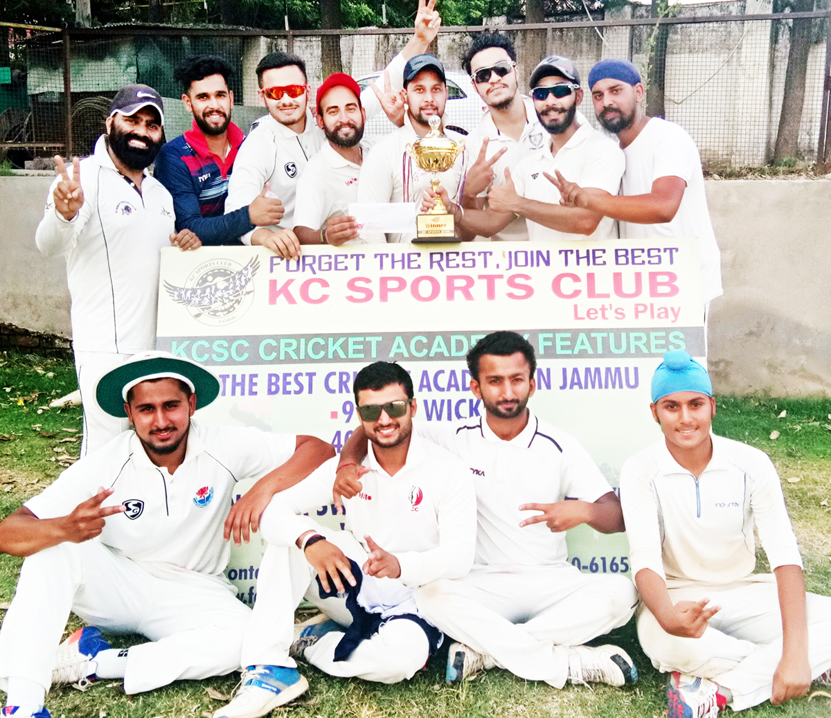 Winners of KC Sports Club Cricket Cup posing for a group photograph in Jammu on Sunday. By Daily Excelsior - June 9, 2019 Share FacebookTwitterWhatsAppPinterestLinkedinCopy URLTelegramEmailTumblrReddItPrintKoo Winners of KC Sports Club Cricket Cup posing for a group photograph in Jammu on Sunday. Winners of KC Sports Club Cricket Cup posing for a group photograph in Jammu on Sunday. Follow our WhatsApp channel