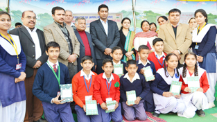 Winners of symposium and slogan writing competition posing for a group photograph alongwith dignitaries at Udhampur on Wednesday.