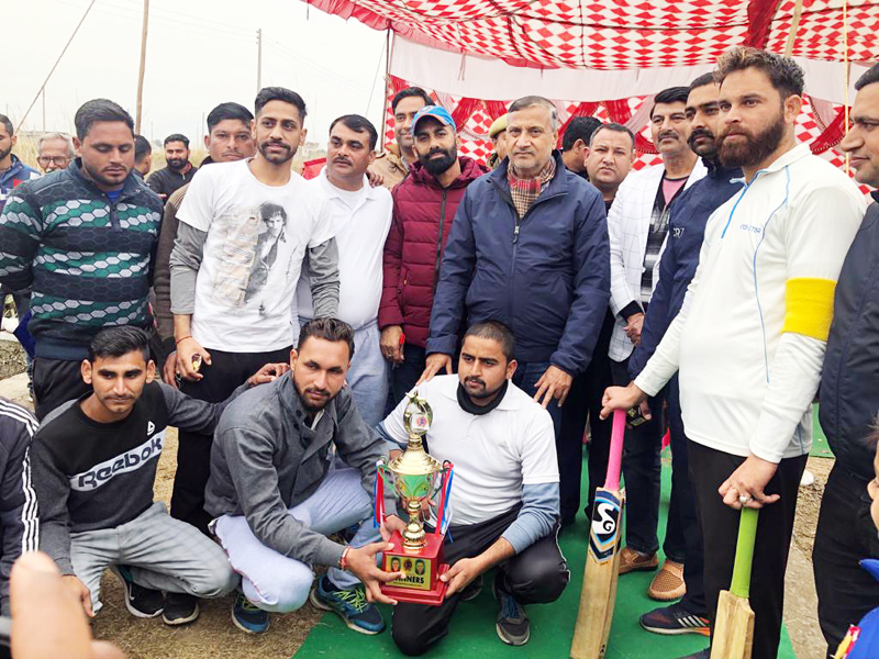 Winners of T20 title posing along with chief guest and other dignitaries in Akhnoor. By Daily Excelsior - January 6, 2020 Share FacebookTwitterWhatsAppPinterestLinkedinCopy URLTelegramEmailTumblrReddItPrintKoo Winners of T20 title posing along with chief guest and other dignitaries in Akhnoor. Winners of T20 title posing along with chief guest and other dignitaries in Akhnoor. Follow our WhatsApp channel
