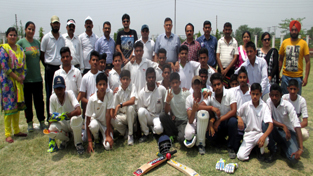 Winners of Under-14 and Under-17 boys Cricket tournament posing along with the chief guest and other dignitaries after clinching victories on Monday.