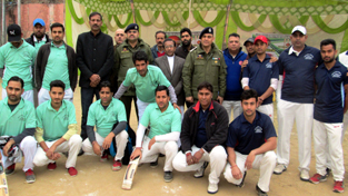 Winners posing alongwith chief guest, other dignitaries and organisers during inaugural funtion of 4th Eid-Diwali Milan Cup in Jammu on Saturday.
