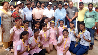 Winners posing for photograph with MLC Sat Sharma, MLA Rajesh Gupta and DC Simrandeep Singh.
