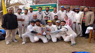 Winners of Prof Yousuf Memorial Cricket Cup posing for a group photograph in Srinagar.