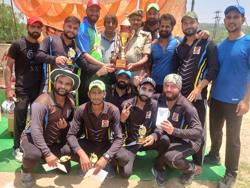 Winners receiving trophy from the chief guest and other dignitaries at Jagti Sports field in Jammu.