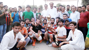 Winning team posing with trophy alongwith former Minister,             S S Slathia and others.                                                – Excelsior/Gautam