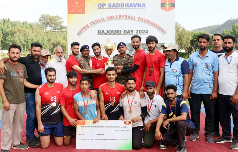 Winning team posing with trophy and cheque at ALG Rajouri. By Daily Excelsior - May 20, 2024 Share FacebookTwitterWhatsAppPinterestLinkedinCopy URLTelegramEmailTumblrReddItPrintKoo Winning team posing with trophy and cheque at ALG Rajouri. Winning team posing with trophy and cheque at ALG Rajouri. Follow our WhatsApp channel