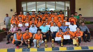 Winning teams of SMVDU Katra posing along with Vice Chancellor, Prof Sanjeev Jain and other dignitaries on Tuesday.