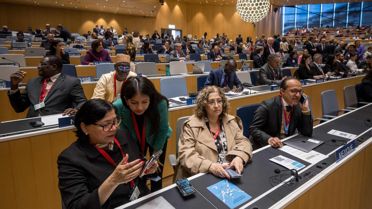 Delegates are seen prior to the final day of a “Diplomatic Conference on Genetic Resources and Associated Traditional Knowledge” at the UN’s World Intellectual Property Organization (WIPO) in Geneva